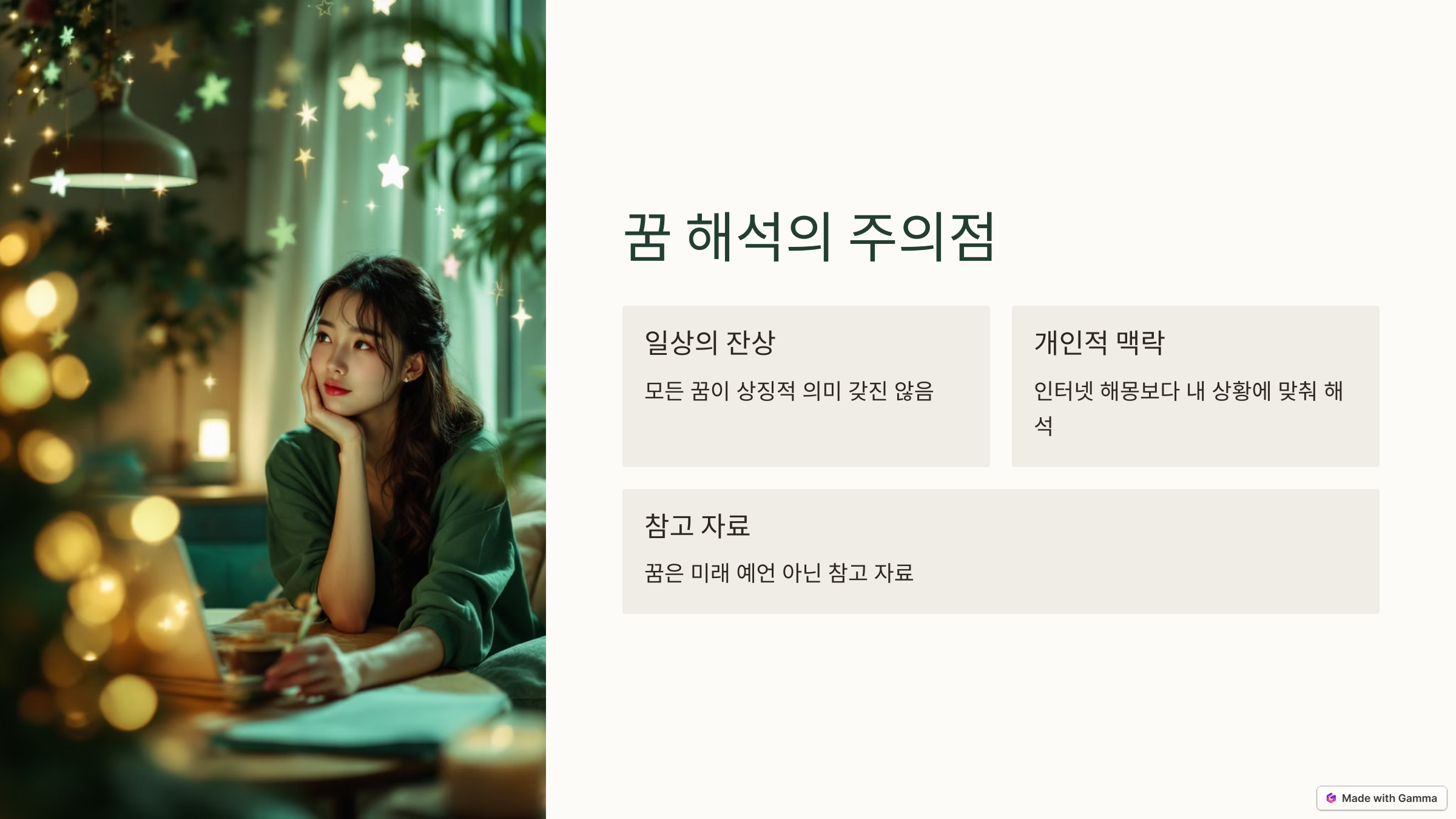꿈을 해석하는 건 결국 ‘나를 더 잘 이해하기 위한 과정’입니다.