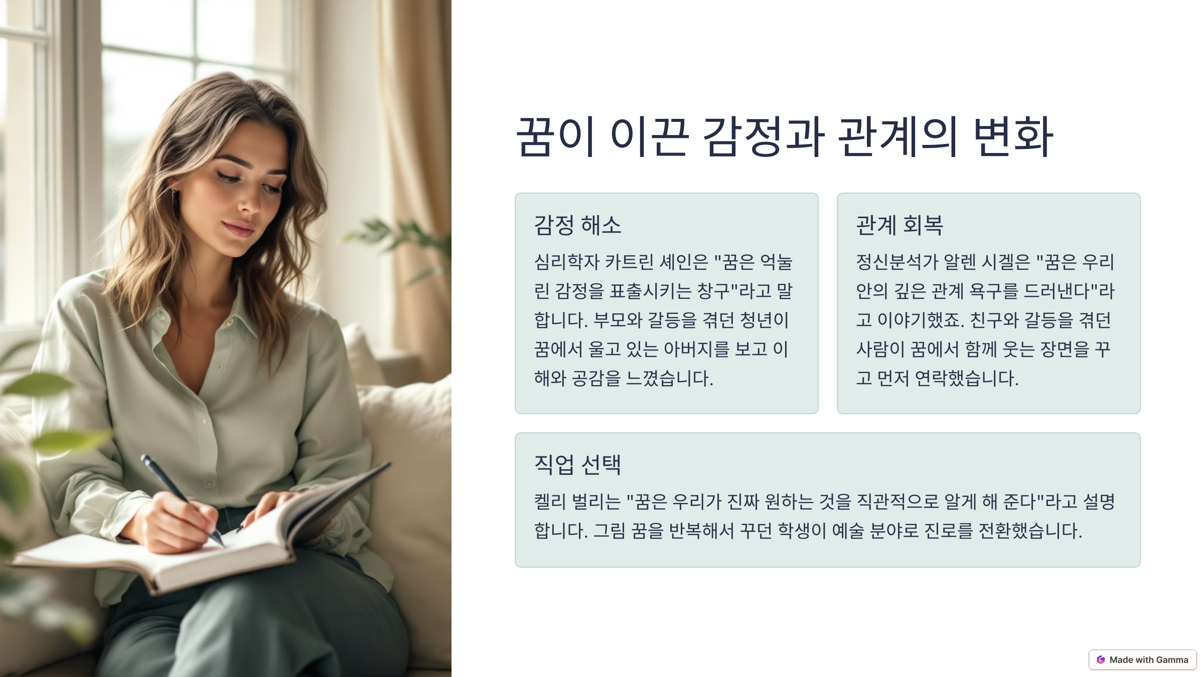 꿈이 실제 삶을 어떻게 바꿀 수 있었는지 이야기해 볼게요.