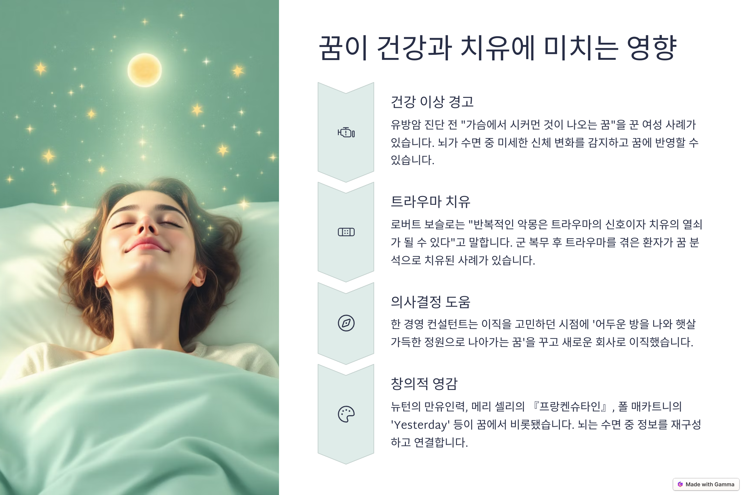 전문가들은 꿈이 직관적 사고를 도우며 의사결정에 영향을 줄 수 있다고 분석합니다.